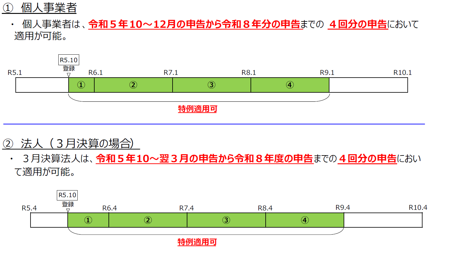 適用対象期間:令和5年10月1日から令和8年9月30日までの日に属する各課税期間