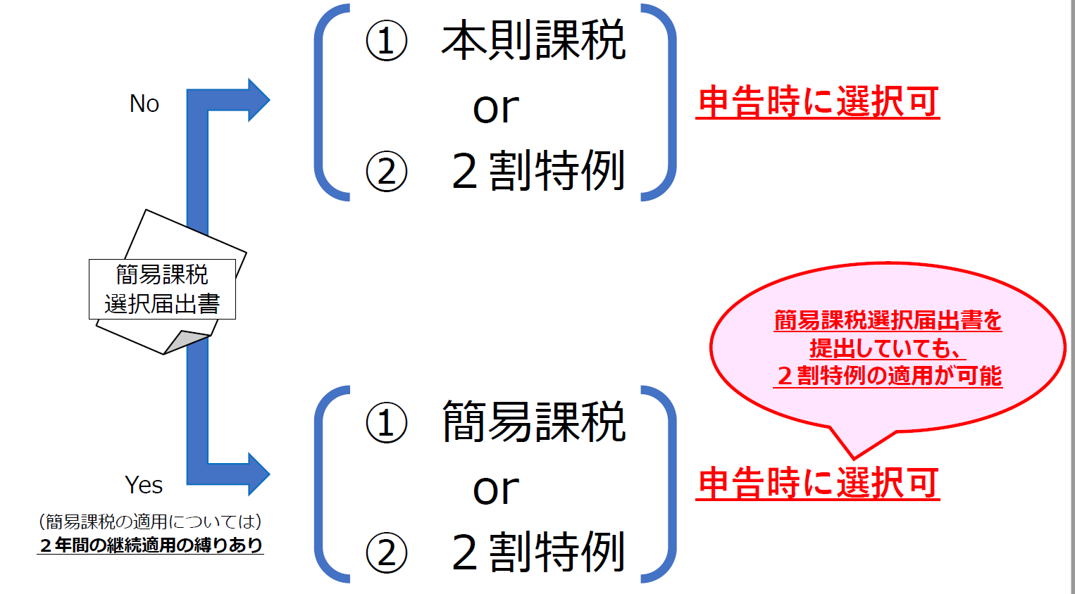2年間の継続適用の縛りはありません。(その都度選択可)