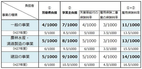 平成28年4月1日より雇用保険料率が変更になります。