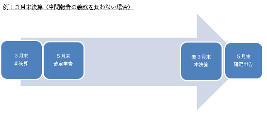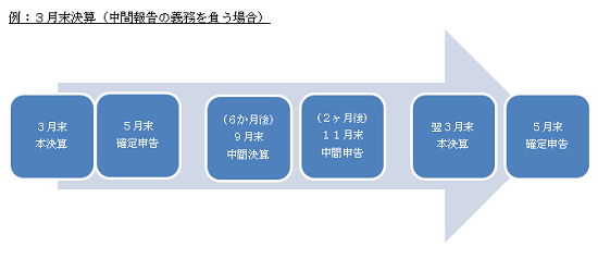 間申告書は、各事業年度開始の日以後6か月を経過した日から2ヶ月以内に提出し、原則として、前期の法人税額の半分を納付しなければなりません。