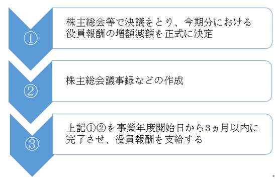 税務署などへの申請は必要ありません。原則はこの様な手順を踏み、役員報酬の改定を行います。