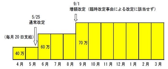 その後 業績好調であることから臨時株主総会にて、9月の報酬から70万円に改定した場合。