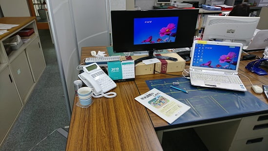 下の写真はわたしの机です。 こんな環境で日々仕事に取り組んでいます。