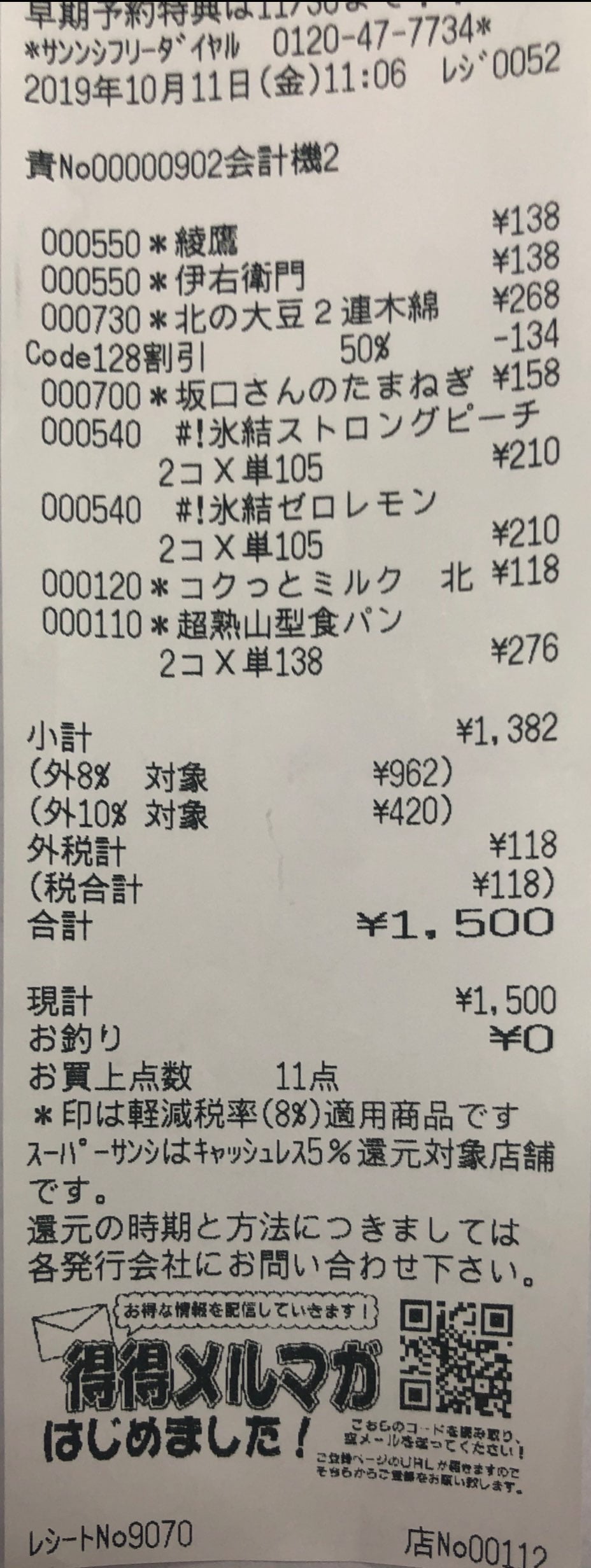 基本的には全てが10%になったのですが、一部10%じゃないものが存在するのです。 軽減税率制度というのですが、日々の生活における負担を減らすために、主に飲食料品を中心に消費税率を8%のままで据え置きますねという制度です。 この制度のおかげで、食費という観点では家計にそれほど影響はなかったのではないでしょうか。