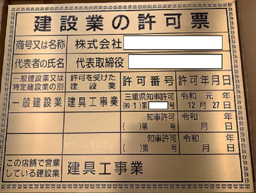 建築業許可の金看板が届きました!