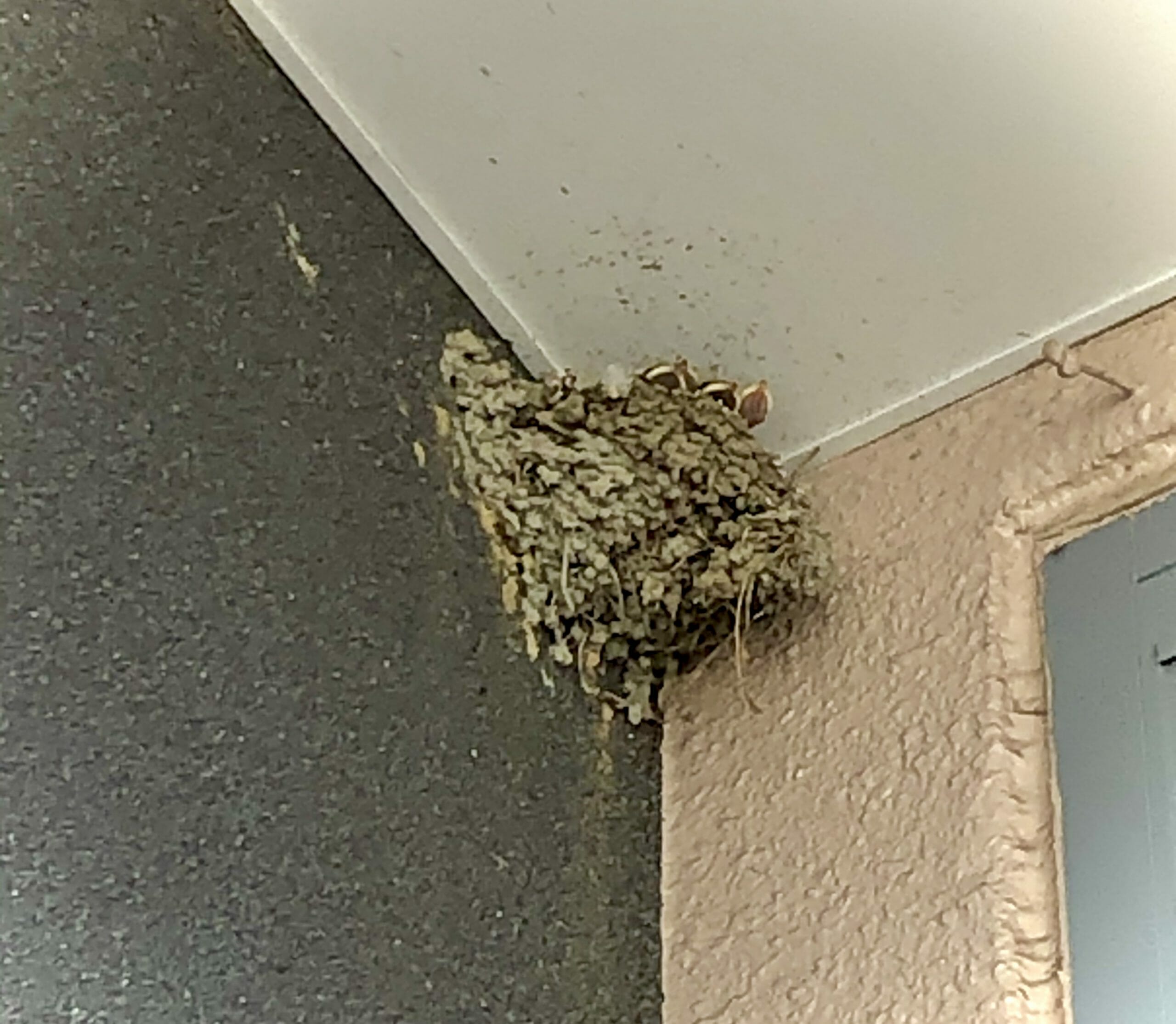 さて、南部会計事務所では玄関口駐車場の脇にツバメが巣作りをしていました。