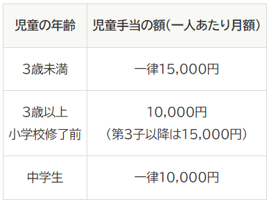 | 児童の年齢 | 児童手当の額(一人あたり月額) | |||