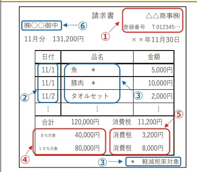 ① 適格請求書発行事業者の氏名又は名称及び登録番号