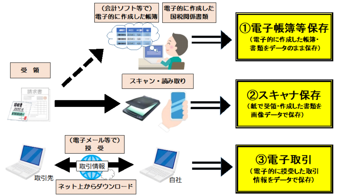 電子帳簿保存法とは、下図のように3つの区分が存在します。