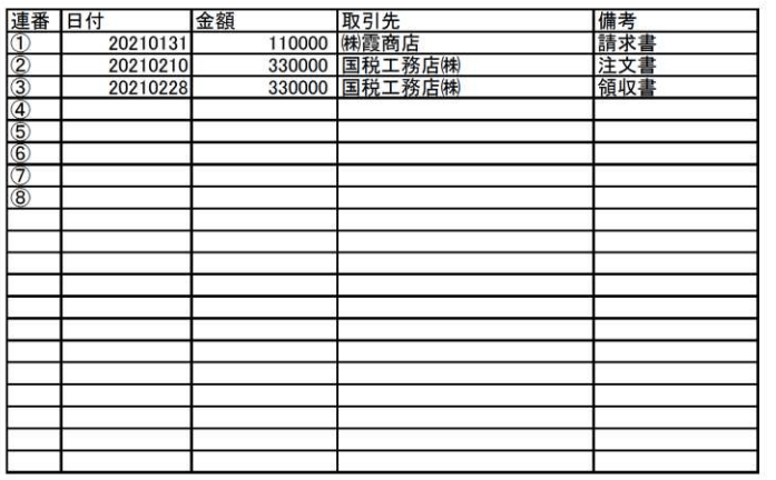 問題となる、②検索機能の確保ですが、「日付・金額・取引先」にて検索することができるようにしなければなりません。